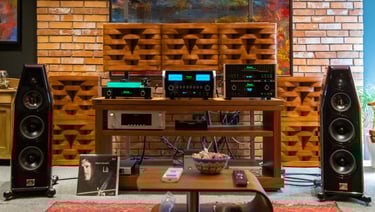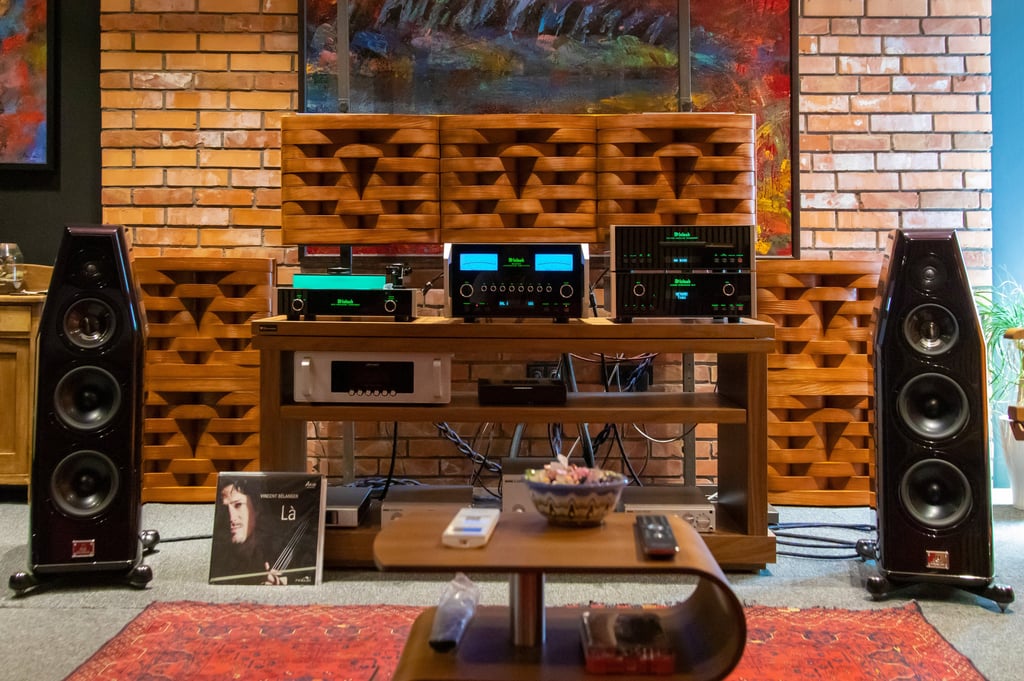 First sound reflections on the side walls Diffusers in combination with Absorbers installed at the first reflection point, provide more liveliness in your high-end listening room. This kind of setup prevents sound energy to be reflected directly to your listening position by the flat walls.
